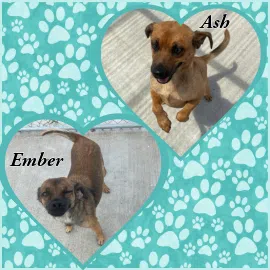 Our dog of the week is another two-fer! Meet: Ember and Ash, one-year-old mixed-breed pups, with tan and black fur, hovering at a great carrying weight of 20 pounds. These siblings were brought to us by the dog warden at the end of July. Ember is shy but sweet, happiest in your lap or trotting along by your side. Her brother Ash is just as loving and devoted, though it’s clear they’ve been through a lot together. During his intake exam, we discovered buckshots in both of Ash’s front legs. Despite what he’s been through, he’s resilient, affectionate, and still trusts people.