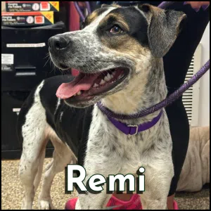Remi is a gorgeous hound with a heart full of love and a nose for adventure! With her stunning speckled coat, soulful eyes, and that big happy smile, she’s ready to charm her way into your life.