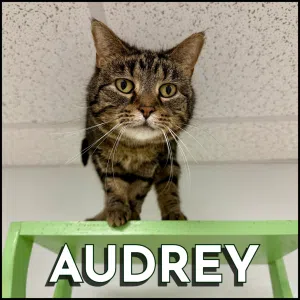 Meet Audrey – A gentle and affectionate tabby cat who’s looking for a home to call her own.